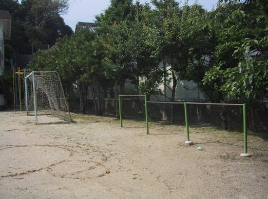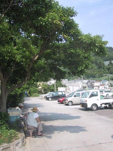 校門のそばのもちの木陰でお兄さんが二人よこうていた。