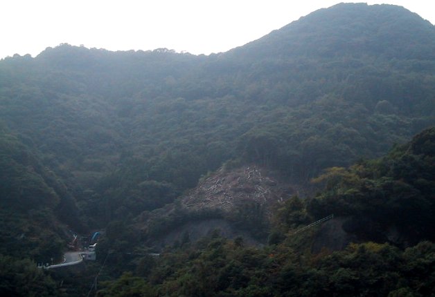 2001/10/27 鳩浦からの農道が抜けてきます 取付道路工事中 砂防ダムの所です |
