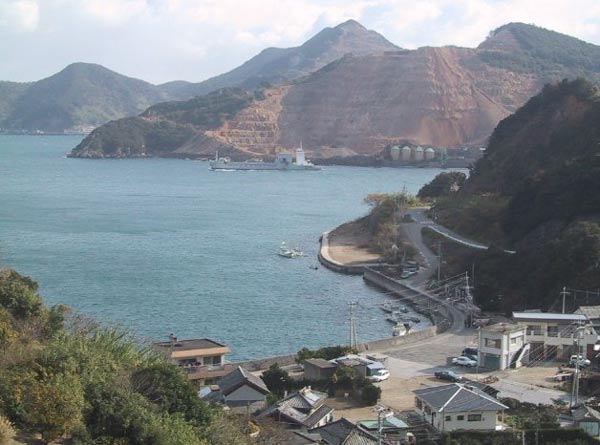2001/12/14 工事の写真と太平洋セメントの 船が荷役が済んで出航 |