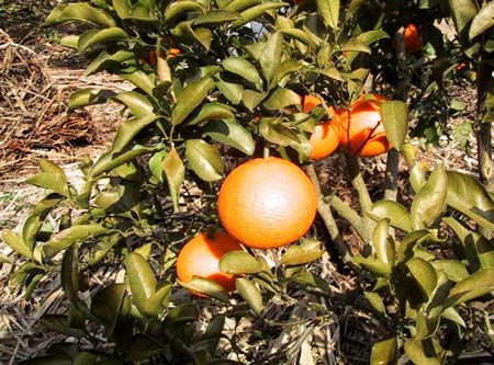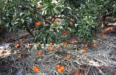 台風の後予防 甘夏に白い薬が かかっています |