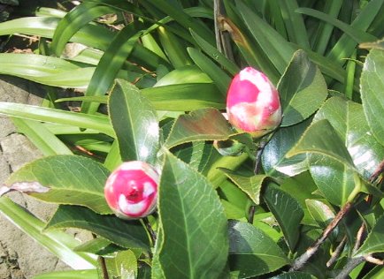 2001/3/2 清見の収穫 庭のサザンカをストロボ焚いて撮影 福岡で買ってきた花らしい |