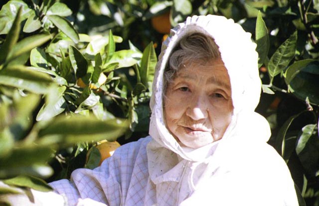 | 2001/11/22「みかんをもぐので、写真を撮ってくれぇー」来年もできるか分からないので記念撮影。生きた証、元気な時の写真を 「サンつくみ」と母です75歳 |
