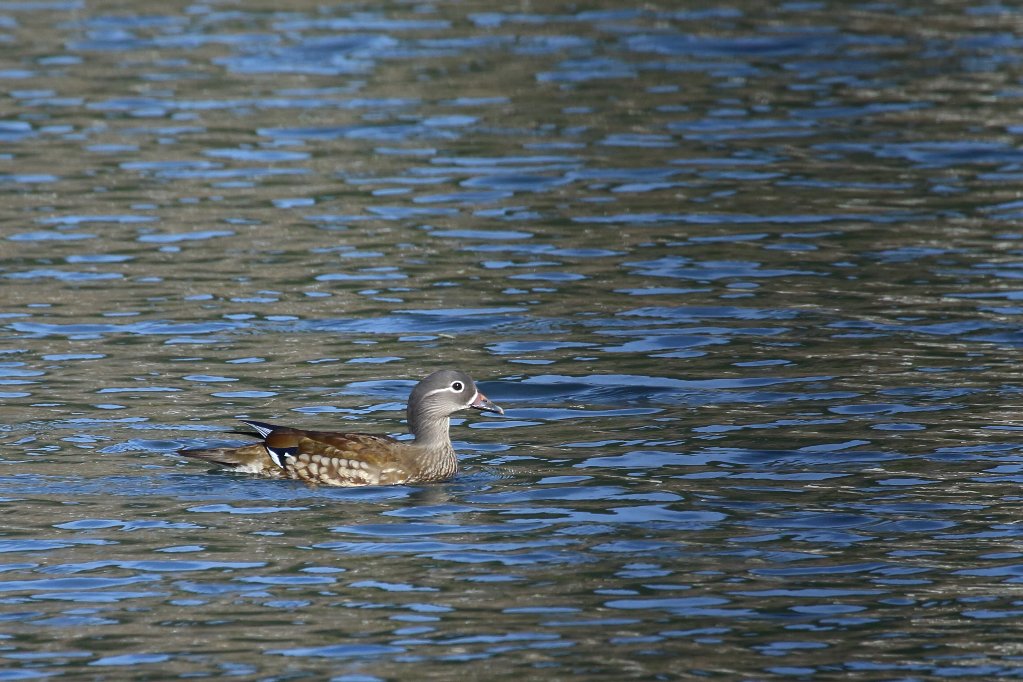 すると先程のホシハジロ♂と交差するようにやって来たオシドリ♀ |