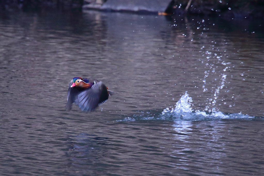 おや〜1羽のオシドリもこちらへやって来るゾ〜とシャッタ〜チャンスを逃すまいと構えて居たら |