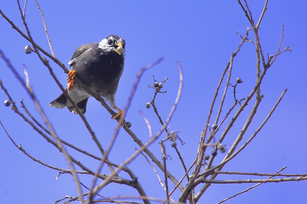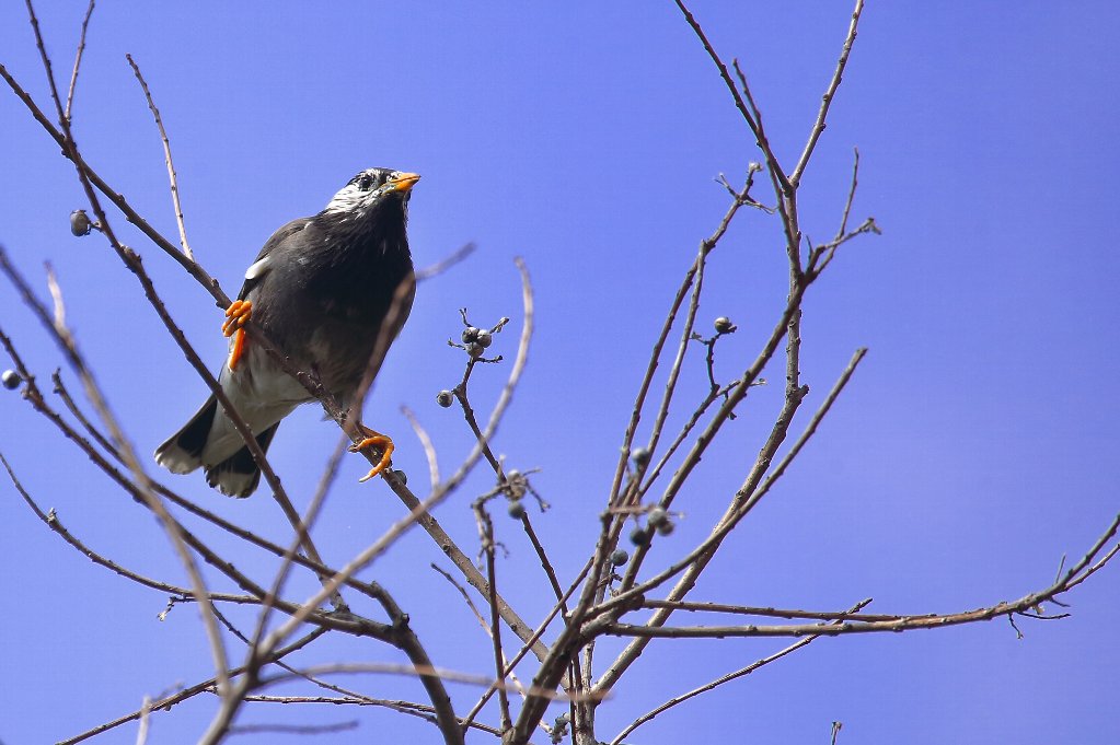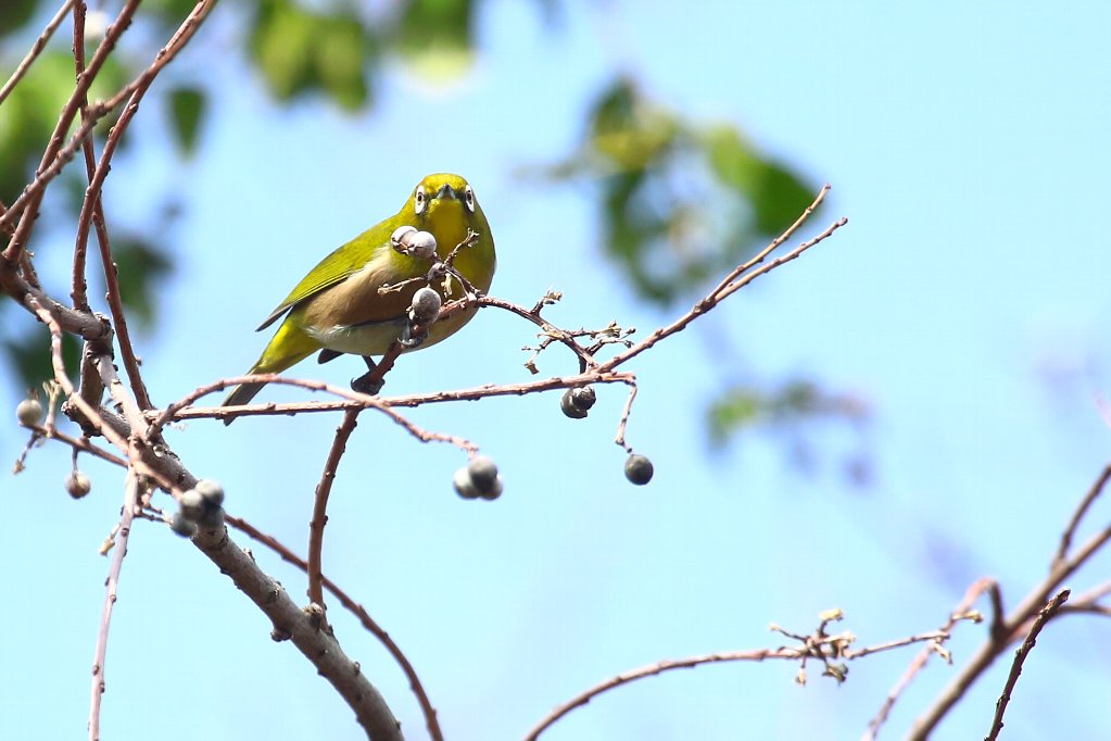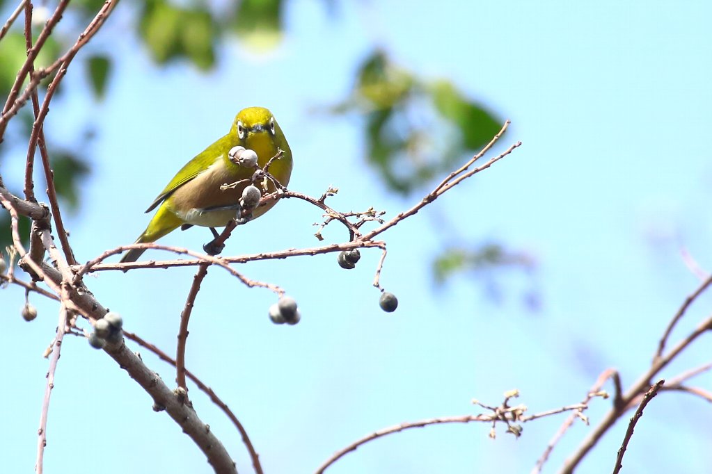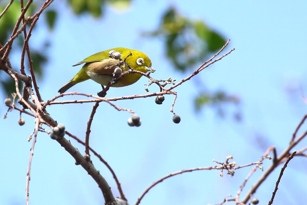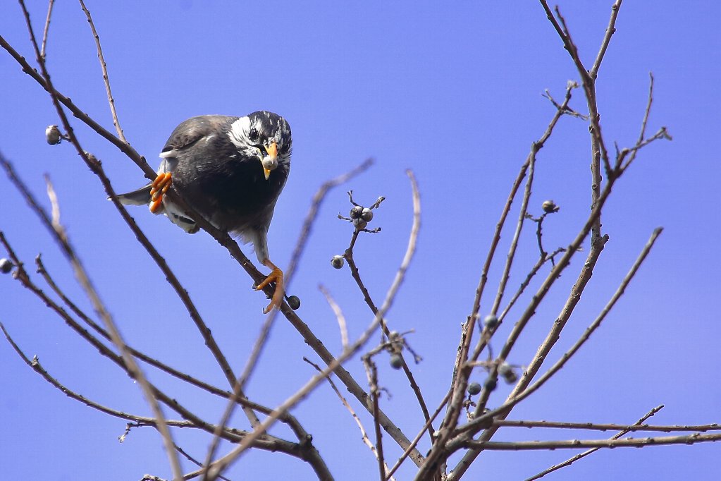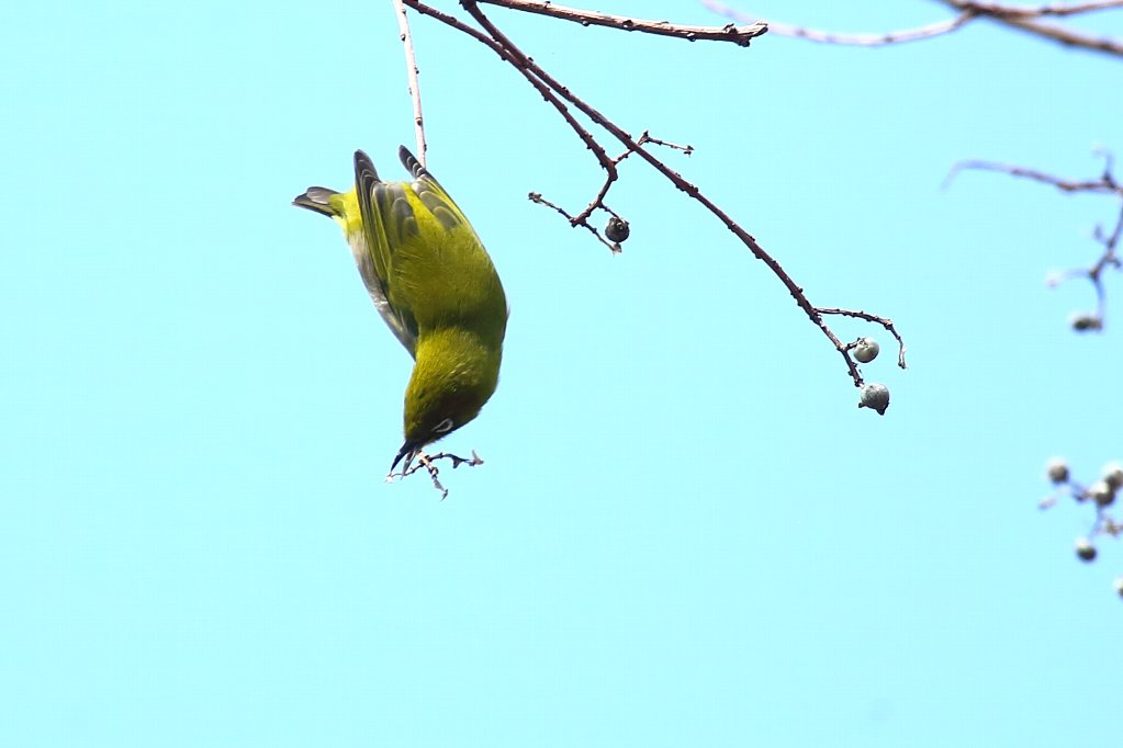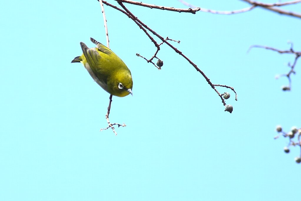 ナンキンハゼの実は、大き過ぎて小さいお口には入らない(?) 小さい嘴では硬すぎて噛み砕けないからなのでしょうか・・・(?) |