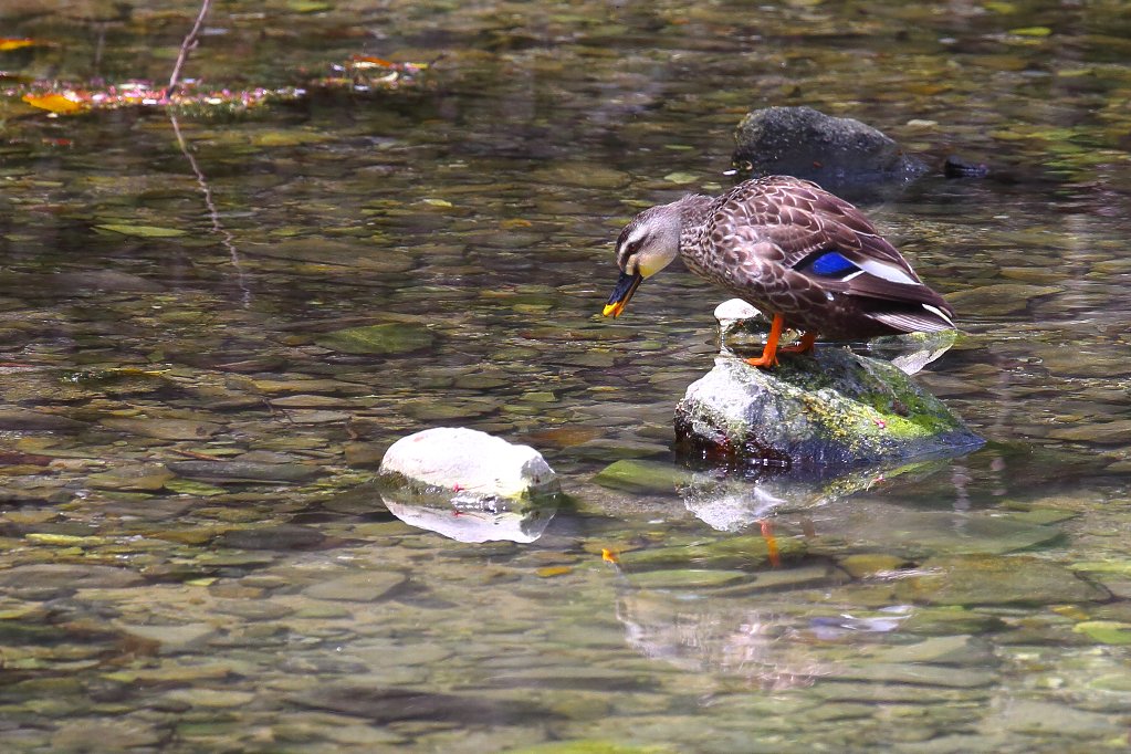 カルガモ(軽鴨)は自分に見惚れて(?)いるのかと撮って居たら |