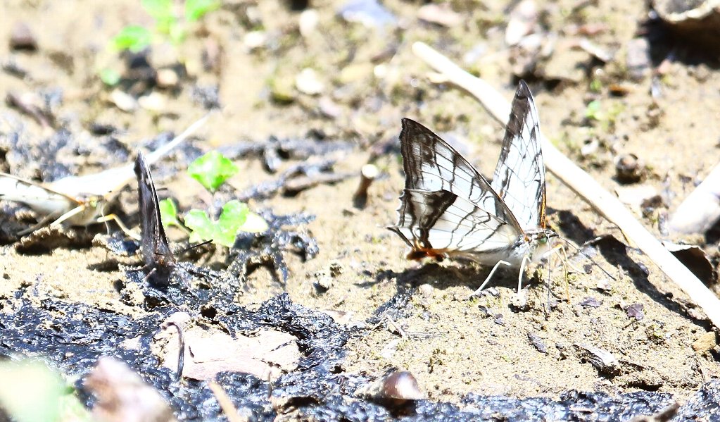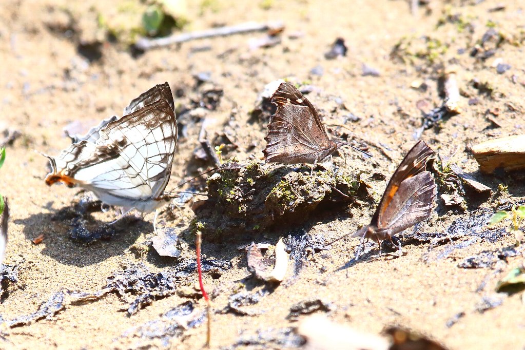 気温28℃と暑いからか沢山の蝶達が給水にやって来てました(上画像左→天狗蝶)(上画像右→石垣蝶) |