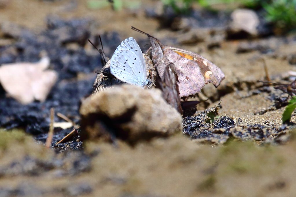 上画像左→ヤマトシジミ(大和小灰蝶) 右→テングチョウ(天狗蝶) |