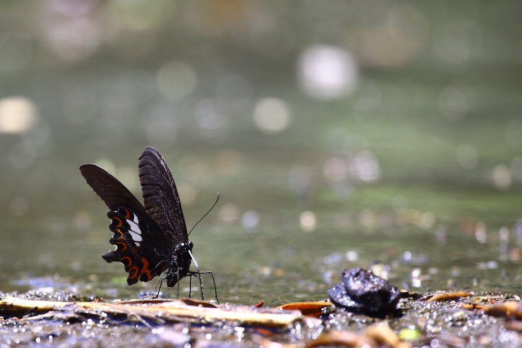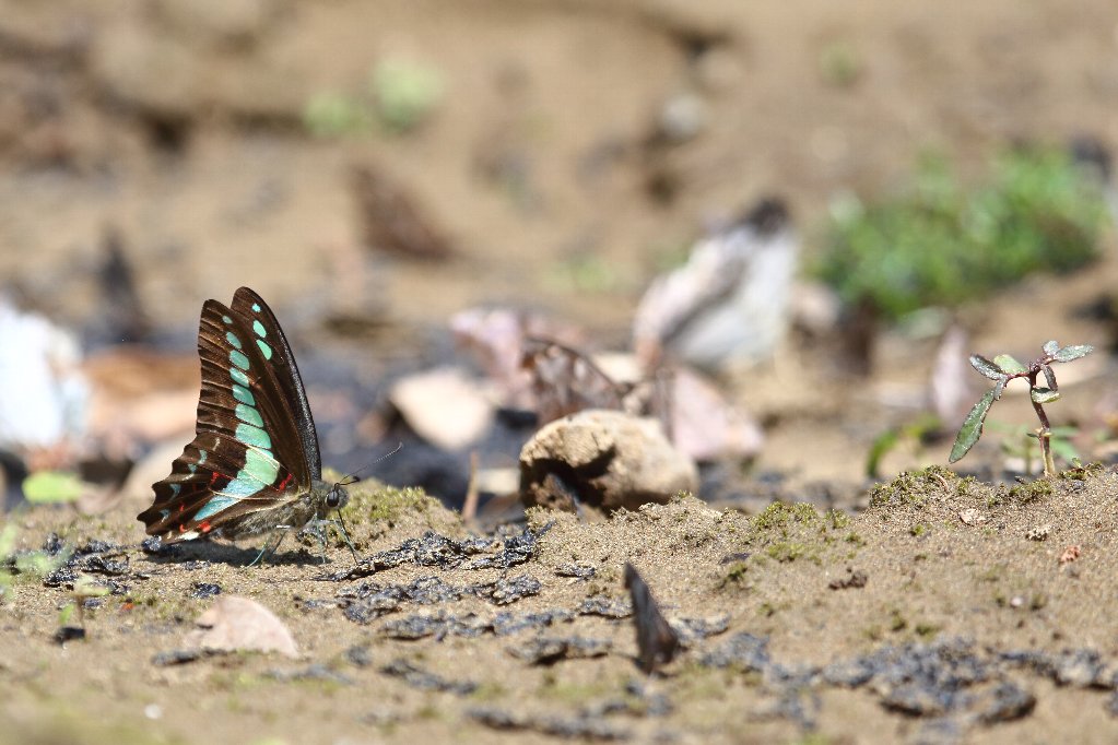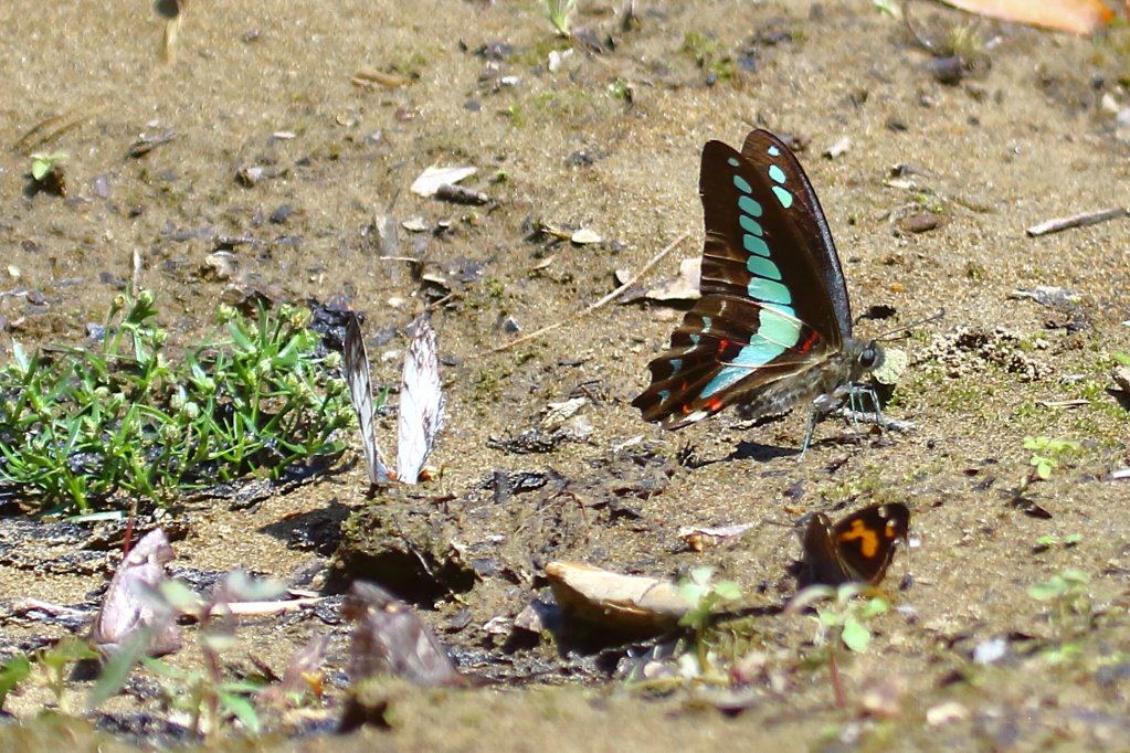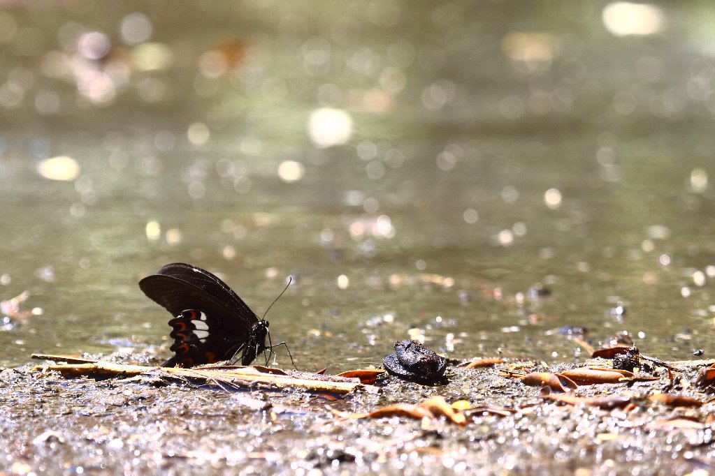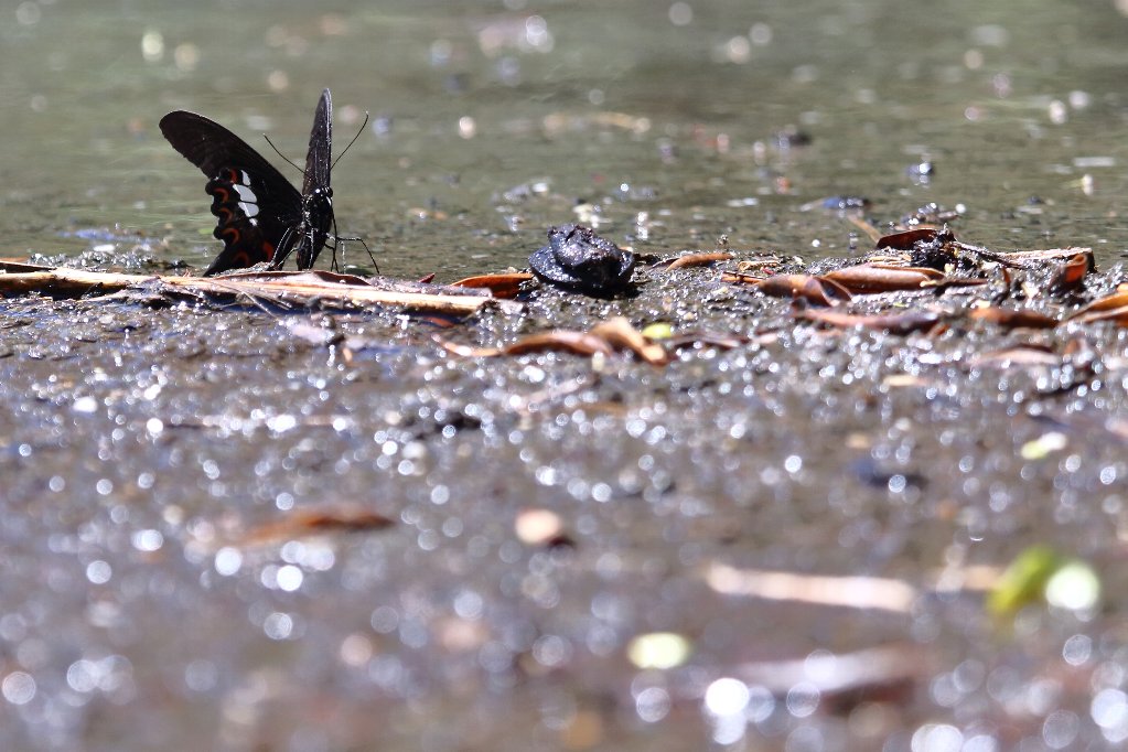 こちらは先程の蝶達より水際の方にやって来たモンキアゲハ(紋黄揚羽) |
