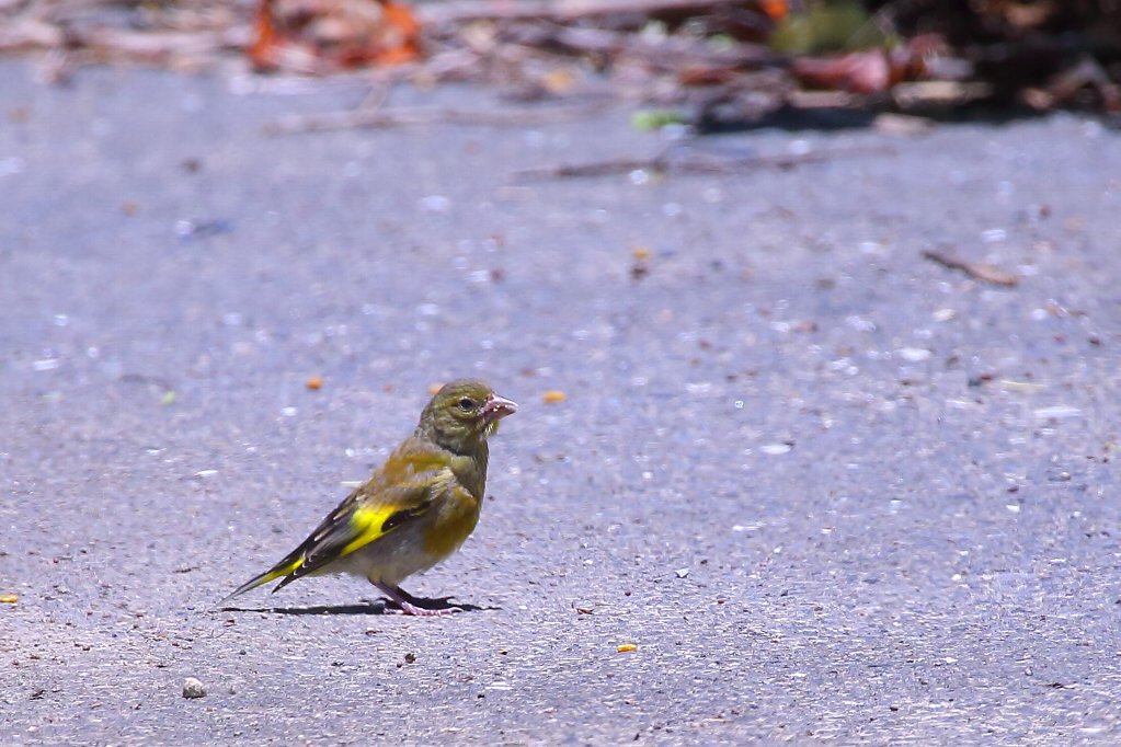 Donちゃん今日はオラ達は撮らんの〜と出て来たカワラヒワ(河原鶸) 「Donちゃん疲れちゃったから今度一杯撮るからネ〜」と→車中の人へ |