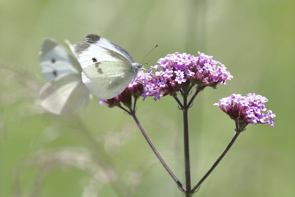 1番手はヤナギハナガサ(柳花笠)にやって来たモンシロチョウ(紋白蝶) |