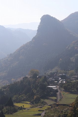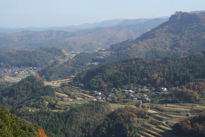 | 西椎屋の滝から約3Km先にある 「宇佐のマチュピチュ展望所」から、山里と 棚田の風景を眺めていると、ふーっと安堵感が湧いて来るのは何故でしょう? |