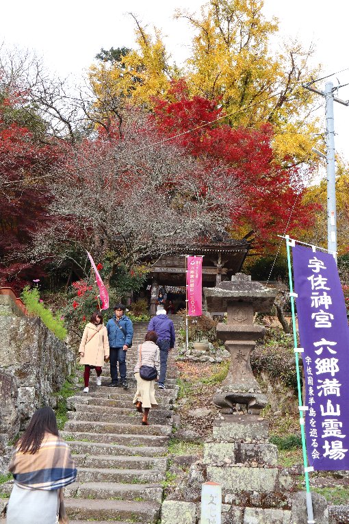 熊野磨崖仏へは、この先にある鬼が一夜にして積み上げたと云う 段を登っていくのですが今回は、かなり苦戦しました若い |