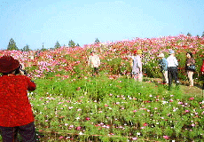 満開近いコスモスの花に 皆んな気